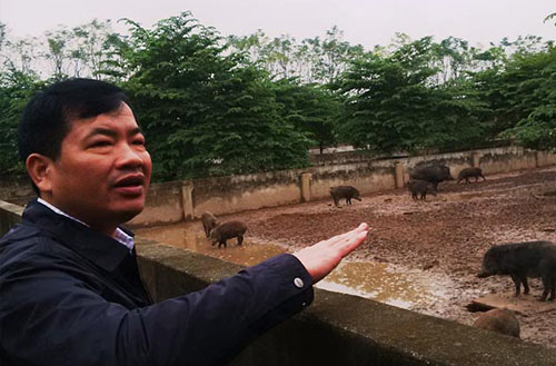 (ông Ngô Xuân Cường - chủ trang trại lợn rừng sinh học Cẩm Đình)
