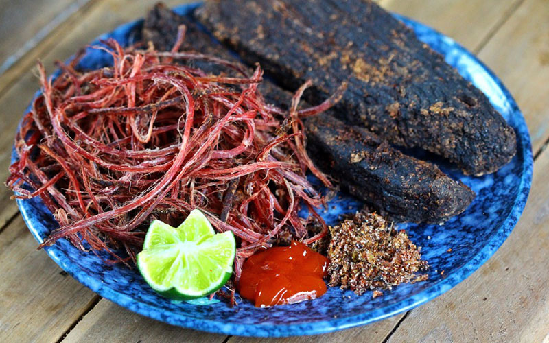 Cách làm thịt lợn rừng hun khói cũng hao hao như cách làm thịt trâu, thịt bò hun khói nhưng mỗi loại lại có cái ngon riêng không thể lẫn được. Thịt lợn rừng hun khói là món ngon nức tiếng trứ danh. Thịt lợn treo trên gác bếp được hun với than hồng lửa đỏ hòa quyện gia vị rừng đặc trưng, hầu hết mọi đối tượng đều ăn được và khen ngon, khó quên mùi vị của nó.